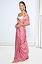 Featuring a dusty pink half-and-half handwoven saree in silk base with silver zari stripes woven in the kadwa technique and an attached blouse piece. Accentuate it with polki earrings and heels for a festive occasion.