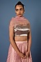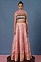 Featuring a pink handwoven lehenga in silk base with meenakari work. It is paired with a matching unstitched blouse piece and a hand-embroidered organza dupatta.