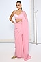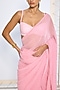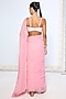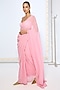 Featuring a pink saree in pure chiffon base with polka dot pattern and an attached blouse piece. Accentuate it with silver earrings and heels for a festive occasion.