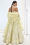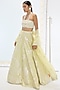 Featuring a pista green handwoven lehenga in pure silk base with pearl hand embroidery and kadwa banarasi technique. It is paired with an unstitched blouse and a dupatta. Accentuate it with dangler earrings and embellished heels for a festive occasion or wedding ceremony.