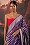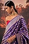 Featuring a purple handwoven saree in silk base with zari, paisley motif detailing and an attached blouse piece. Style it with statement jewellery and heels for a wedding or festive occasion.