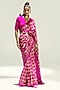 Featuring a rani pink and gold handwoven saree in pure silk base with gold zari detail and houndstooth pattern. It is paired with an unstitched blouse. Accessorize it with statement jewellery and heels for cocktail parties.