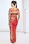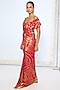 Featuring a red handwoven saree in pure silk base with zari embroidery and kadhwa banarasi technique, including an attached blouse piece. Accentuate it with polki earrings and heels for a festive occasion.