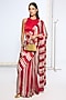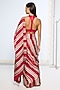 Red & White Satin Silk Striped Saree Set