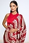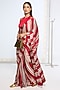 Featuring a red saree in satin silk base with white printed stripes and an attached blouse piece. Accentuate it with silver earrings and heels for a festive occasion.
