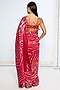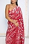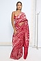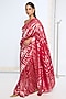 Featuring a red handwoven saree in silk base with silver zari stripes woven in the kadwa technique and an attached blouse piece. Accentuate it with polki earrings and heels for a festive occasion.