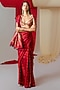 Featuring a red handwoven banarasi kadwa saree in silk base. It is paired with an unstitched blouse piece. Accentuate it with statement jewellery and heels for a wedding or engagement ceremony.
