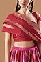 Featuring a red handwoven lehenga in silk base. It is paired with a matching unstitched blouse and a dupatta.