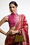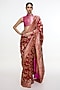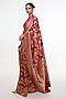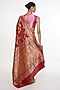 Featuring a ruby red handwoven saree in satin silk base with kadhwa banarasi technique. It is paired with an unstitched blouse. Accentuate it with statement earrings, hair accessories or a potli bag, perfect for weddings and festive celebrations where you want to make a statement.