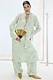 Featuring a sea green handwoven kurta in habutai silk base with digital print. It is paired with pants. Accentuate it with dangler earrings and embellished heels for a festive occasion or wedding ceremony.