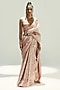 Featuring a vanilla and old rose handwoven saree in satin silk base with polka dot and banarasi tanchoi weave. It is paired with an unstitched blouse. Accessorize it with statement jewellery and heels for cocktail parties.