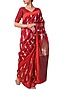 Featuring a red handwoven saree in silk base with nib motifs. It is paired with a matching blouse piece.