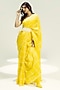 Featuring a yellow handwoven saree in pure silk base with checks pattern and banarasi cutwork. It is paired with an unstitched blouse. Accessorize it with statement jewellery and heels for cocktail parties.