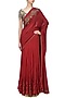 Featuring a red lehenga saree in net pleates and chiffon pallu with sequins, dabka, thread, moti and dori embroidered blouse. It comes along with sequins, dabka, thread, moti and dori embroidered blouse in raw silk.
