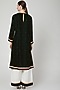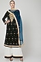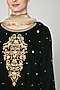 Featuring an emerald green kurta in velvet base with zardosi embroidery. It is paired with contrasting white palazzo pants and a teal blue organza dupatta.