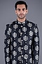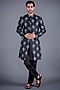 Pearl Black Mulberry Silk Printed Handcrafted Sherwani Set