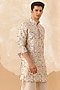 Featuring a yellow handcrafted kurta in silk base with print. Accentuate it with pants, a pair of mojaris and a watch; ideal for festive gatherings or pooja ceremony.
