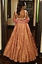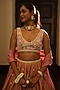 Featuring a champagne pink lehenga in velvet, chanderi and glass tissue silk base with boota work. It is paired with a blouse having glass beads, zardosi and pearl embroidery, including a dupatta. Accentuate it with statement jewellery, low bun and heels for a wedding, engagement or sangeet ceremony.