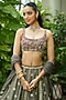 Featuring a charcoal grey lehenga in uppada silk and organza with pitta, pearl, glass beads, cutdana and zardosi embroidery. It is paired with a blouse and a dupatta. Accentuate it with statement jewellery and heels for a wedding, sangeet or engagement ceremony.
