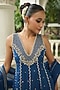 Featuring a deep blue anarkali in georgette base with pearl, sequins and glass beads embroidery. It is paired with sharara pants and an embroidered dupatta. Accentuate it with dangler earrings and heels for a festive occasion, diwali celebration or wedding ceremony