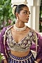 Featuring a deep violet and purplish blue lehenga in uppada silk and organza base with pitta, glass beads, mirror, cutdana and sequins embroidery. It is paired with an embroidered blouse and a dupatta. Accentuate it with statement jewellery, a floral bun and heels for a wedding, engagement or sangeet ceremony.