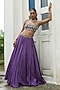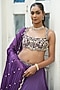 Featuring a deep violet lehenga in uppada silk and glass tissue silk base. It is paired with a blouse having glass beads, zardosi, pearl work and sequin embroidery, including a dupatta. Accentuate it with statement jewellery, low bun and heels for a wedding, engagement or sangeet ceremony.