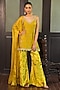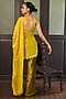 Featuring a lime green tunic in glass tissue silk and chinon chiffon base with pearl-drop, stone pitta and pearl embroidery. It is paired with velvet bell-bottom pants and an embroidered dupatta. Accentuate it with dangler jewellery and heels for a festive occasion, haldi, wedding or engagement ceremony.