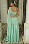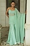 Featuring a pastel blue kurta in chinon chiffon, upada and organza base with sequins, pearl and glass bead embroidery. It is paired with sharara pants and an embroidered dupatta. Accentuate it with dangler jewellery and heels for a wedding, sangeet or engagement ceremony.