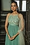 Featuring a sage green anarkali in uppada silk, net and habutai silk base with resham, cutdana, pearl and sequins embroidery. It is paired with pants and an embroidered dupatta. Accentuate it with dangler earrings and heels for a festive occasion, mehendi ceremony, diwali celebration or cultural event.