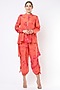 Featuring an electric orange gusset shirt in modal base with tie-dye print and mirror embroidery. It is paired with matching cuffed pants.