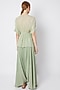 Featuring a sea green shimmer kimono in silk modal base. It is paired with matching flared dhoti pants and a handmade necklace.