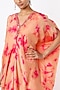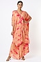 Featuring a peach kaftan in silk modal base with mirror embroidery and tie-dye print. It is paired with matching asymmetrical pants.