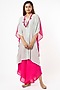 Featuring a pink and green tucked kaftan in silk modal and shimmer georgette base. It is paired with matching pants and a handmade necklace, made out of coloured plaids, fabric trimmings and self coloured tassels.