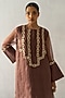 Featuring a brown kurta in organza and chanderi base with stone and dabka embroidery. It is paired with pants. Accentuate it with statement jewellery and heels for a festive occasion or wedding ceremony.