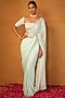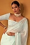 Featuring an aqua blue saree in georgette base with silver moti and sequins embellishments. It is paired with a chanderi blouse and an underskirt. Accentuate it with statement earrings and heels for a wedding, sangeet or engagement ceremonies.