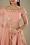Featuring a blush pink lehenga in chanderi base with nakshi, gota and sequin embroidery. It is paired with a matching blouse and an organza dupatta.