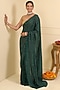 Featuring a bottle green saree in georgette base with mukaish work. It is paired with a contrasting lampi blouse and a semi crepe underskirt. Accentuate the designer saree set with statement earrings and heels for engagement, sangeet, or pre-wedding ceremonies.