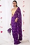 Featuring a dark purple pre-stitched saree in georgette base with mirror, thread, cutdana, and sequins embroidery including print. It is paired with a mustard chanderi blouse and a semi crepe underskirt. Accentuate with statement jewellery and heels for festive occasions or wedding ceremony.