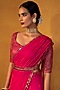Featuring a hot pink saree in net base with sequin embellishments. It is paired with a blouse, a belt, and an underskirt. Accentuate it with statement jewellery and heels for a festive occasion or sangeet ceremony.