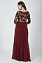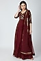 Featuring a wine overlap anarkali in velvet base with nakshi, gota, dabka and sequins embellishments.