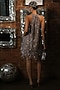 Nude French Crepe & Net Embroidered Mini Halter Dress