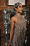 Featuring a nude mini halter dress in net and french crepe base with embroidery. Accentuate it with statement earrings, a clutch and block heels for cocktail soirees.
