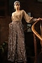 Featuring a nude top in net and french crepe base with embroidery. It is paired with embroidered pants. Accentuate it with statement earrings, a clutch and block heels for a evening look.