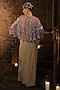 Featuring a nude short cape in net base with embroidery. It is paired with a french crepe sarong. Accentuate it with statement earrings, a clutch and block heels for cocktail parties.