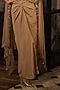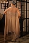 Featuring a nude cape in net base with embroidery. It is paired with a net and french crepe embroidered corset and a french crepe sarong. Accentuate it with statement earrings, a clutch and block heels for cocktail parties.