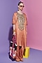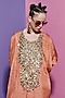 Featuring a peach pink kurta in linen silk base with embroidery and geometric print. Accentuate it with pants, statement earrings and heels for any festive occasion.