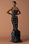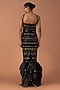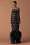 Featuring a black pencil dress in jersey, tulle and metallic leather base with bugle beads and leather tassel embroidery. It is paired with an embroidered skirt. Accentuate it with sleek metallic heels and minimal crystal or diamond jewellery for a refined finish, perfect for cocktail parties, evening galas, red-carpet events, or high-fashion soirees.