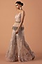 Featuring a blush pink layered peplum top in jersey and tulle base with metallic sequins and cutdana embroidery. It is paired with trousers. Accentuate it with sleek metallic heels and minimal statement earrings to balance the bold sequins, for a stylish ensemble ideal for cocktail parties or high-fashion soirees.