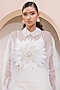 Featuring a cream shirt in organza and moss crepe base. It is paired with a matching bralette and pants.
