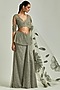 Featuring a grey lungi saree in net and woven base with applique details. It is paired with a matching blouse having an attached dupatta